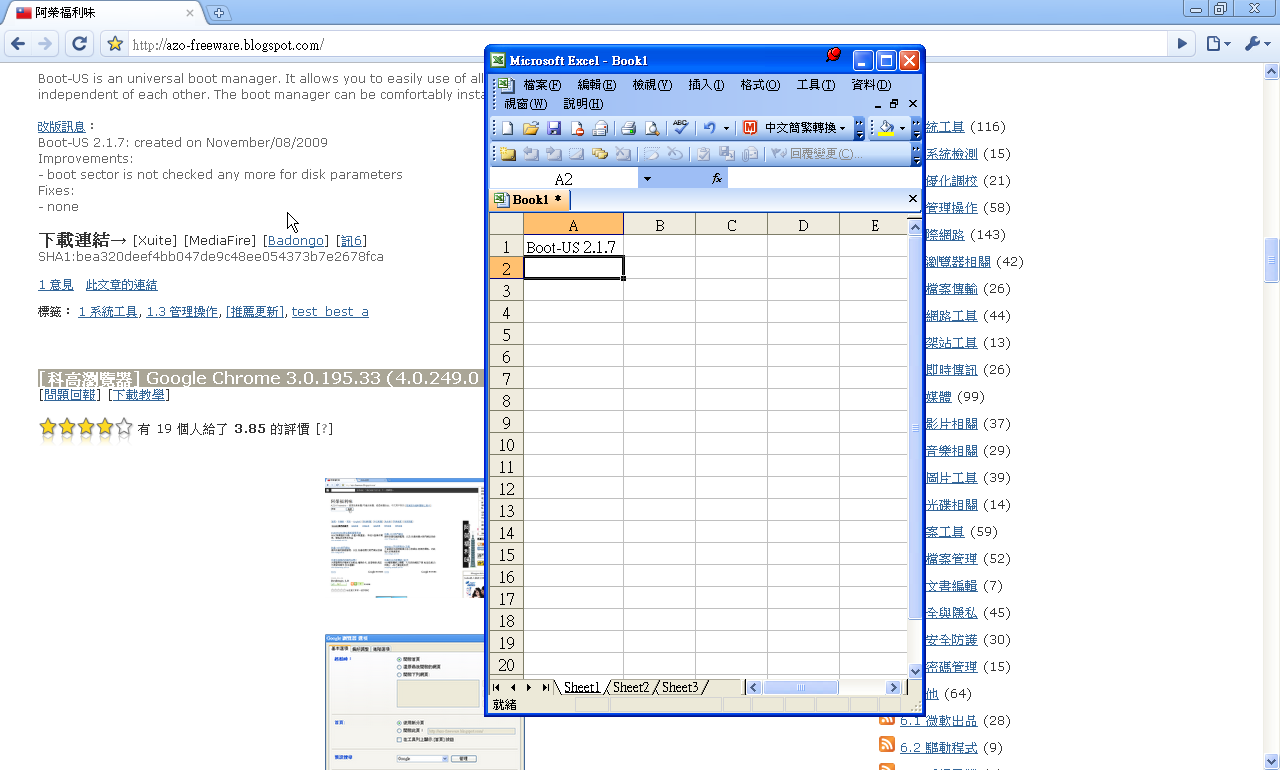 視窗最上層顯示工具–DeskPins,許多軟體沒有置頂顯示功能(如:Excel),一旦要將某個視窗的文字複製到另一個視窗時就會多點了好幾下滑鼠,這個軟體讓任何視窗都可以最上層顯示,開啟後按一下右下角小圖示,滑鼠游標會變成「大頭針」,只要在目標視窗上點一下,就可以讓該視窗最上層顯示,再按一下大頭針就可以取消。